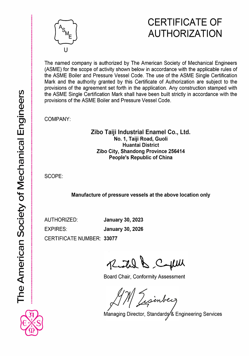 HOW TO CHOOSE淄博太極工業搪瓷有限公司專業制造搪玻璃設備、氟塑料設備及碳鋼、不銹鋼壓力容器的大型企業。現有員工1000余人,注冊資金11900萬元,占地600畝,生產車間19萬平米,凈資產超20億元。太極以人為本,單用于職工的居住生活投入已達3億,使工者有其房,家人生活及孩子....[查看更多]